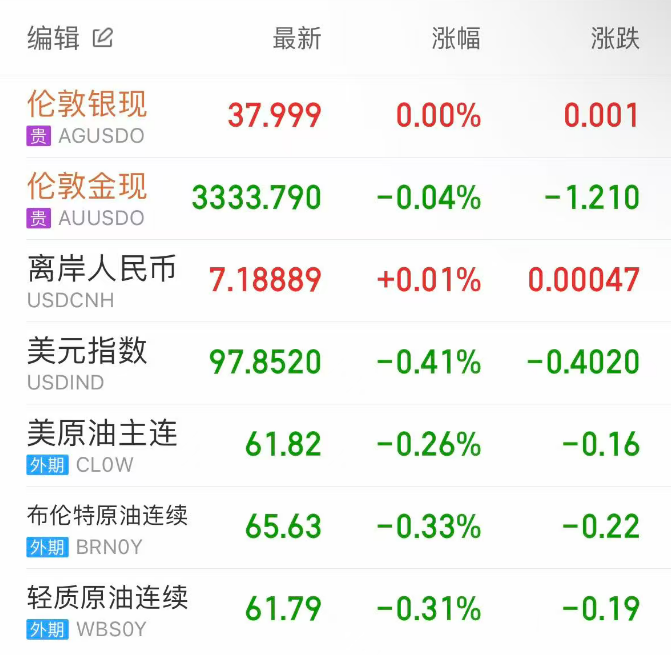 现货黄金先涨后跌,盘中一度涨至3350关口附近,但随后持续下行,近乎抹去日内全部涨幅,伦敦金最终接近平收,收报3333.79美元/盎司;伦敦银亦接近平收,报37.999美元/盎司。
