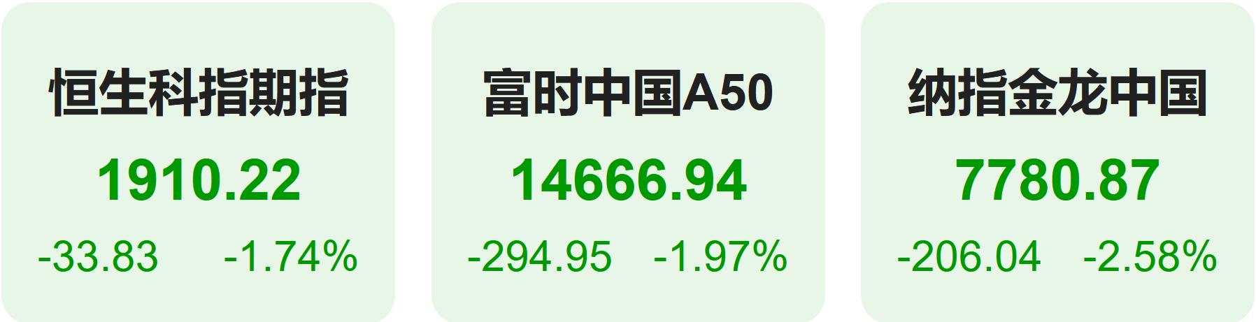 8月27日,隔夜恒生科技指数期货下跌1.74%,纳斯达克中国金龙指数下跌2.58%,富时中国A50指数下跌1.97%。