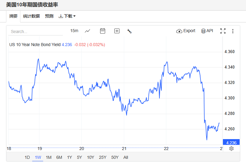 美债收益率普跌,基准的10年期美债收益率收报4.236%,对利率更加敏感的2年期美债收益率收报3.621%。