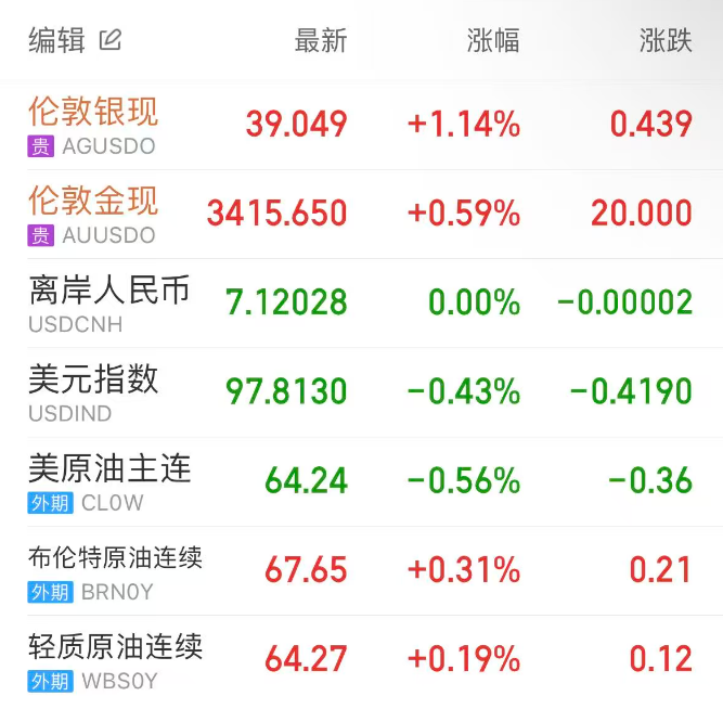 随着市场继续评估美联储独立性面临的威胁,并等待关键的通胀数据出炉,现货黄金连续第三个交易日走高,伦敦金最终收涨0.59%,收报3415.69美元/盎司,创五周新高;伦敦银收涨1.18%,报39.064美元/盎司。