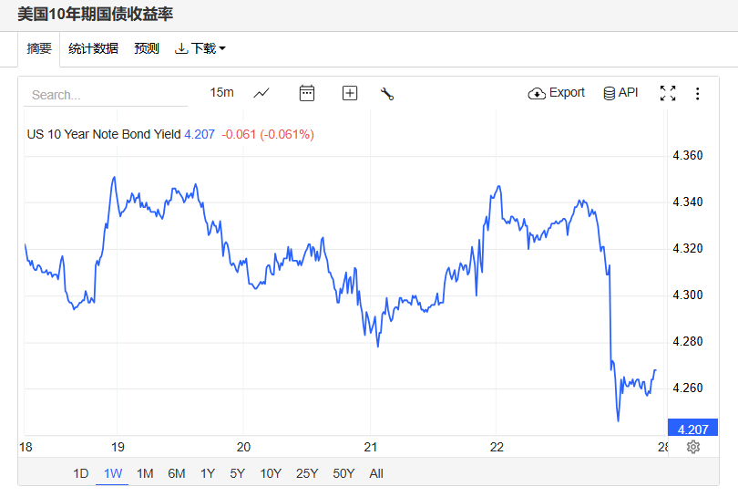 美债收益率涨跌不一,基准的10年期美债收益率收报4.207%,对利率更加敏感的2年期美债收益率收报3.637%。