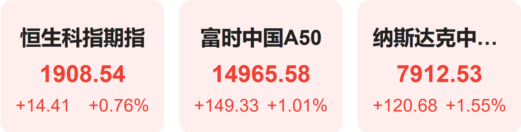 8月29日,隔夜恒生科技指数期货上涨0.76%,纳斯达克中国金龙指数上涨1.55%,富时中国A50指数上涨1.01%。