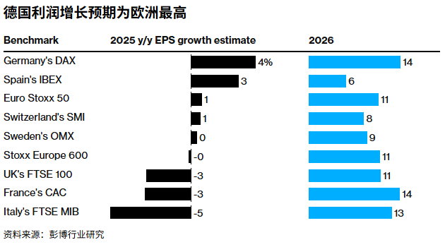 据数据显示,分析师预计2025年DAX成分股每股收益将增长4%,显著高于其他西欧基准指数;明年利润增速更将达14%,甚至超过标普500指数的预期水平。