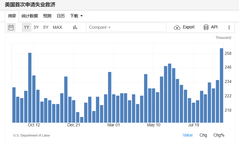 具体来看,美国8月通胀基本符合预期,核心CPI同比增3.1%,环比增0.3%,持平华尔街预期和7月前值。加上美国上周首申失业金人数不降反增至26.3万,跃升至近四年高位,提供了劳动力市场正在迅速降温的更强证据。