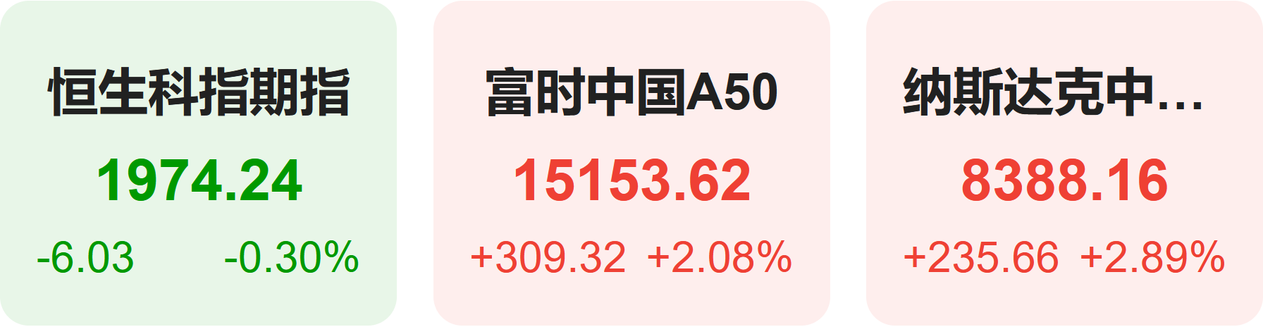9月11日,隔夜恒生科技指数期货下跌0.30%,纳斯达克中国金龙指数上涨2.89%,富时中国A50指数上涨2.08%。