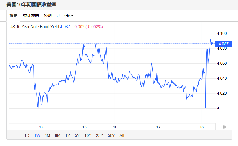美债收益率有所攀升,基准的10年期美债收益率收报4.087%,对美联储政策利率敏感的2年期美债收益率收报3.5720%。