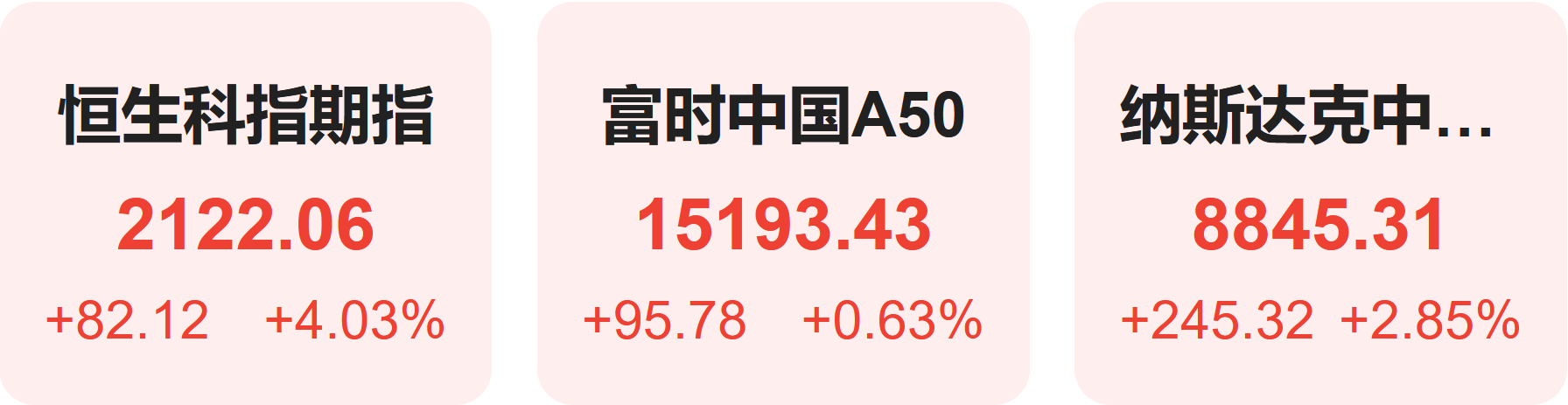 9月17日,隔夜恒生科技指数期货上涨4.03%,纳斯达克中国金龙指数上涨2.85%,富时中国A50指数上涨0.63%。