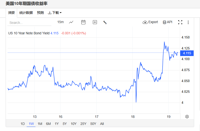 美债收益率继续攀升,基准的10年期美债收益率收报4.115%,对美联储政策利率敏感的2年期美债收益率收报3.5740%。