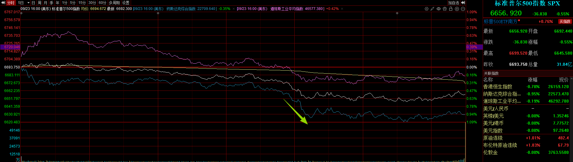 鲍威尔讲话打压了市场情绪,美股盘中转跌并扩大跌幅,三大股指刷新日低,纳指跌超1%。