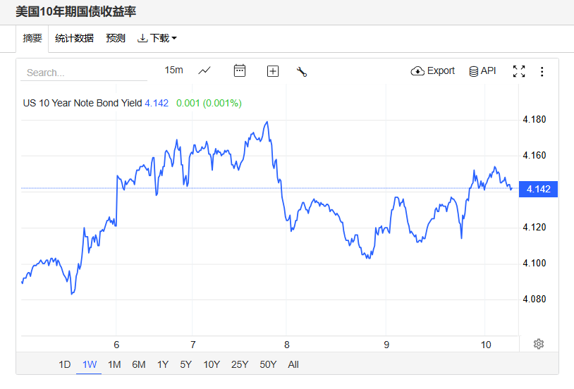 美债收益率小幅波动,基准的10年期美债收益率收报4.144%,对美联储政策利率敏感的2年期美债收益率收报3.605%。