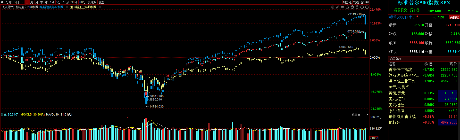 截至上周五收盘,标普500指数跌2.71%,报6552.51点;道琼斯指数跌1.90%,报45479.60点;纳斯达克指数跌3.56%,报22204.43点。