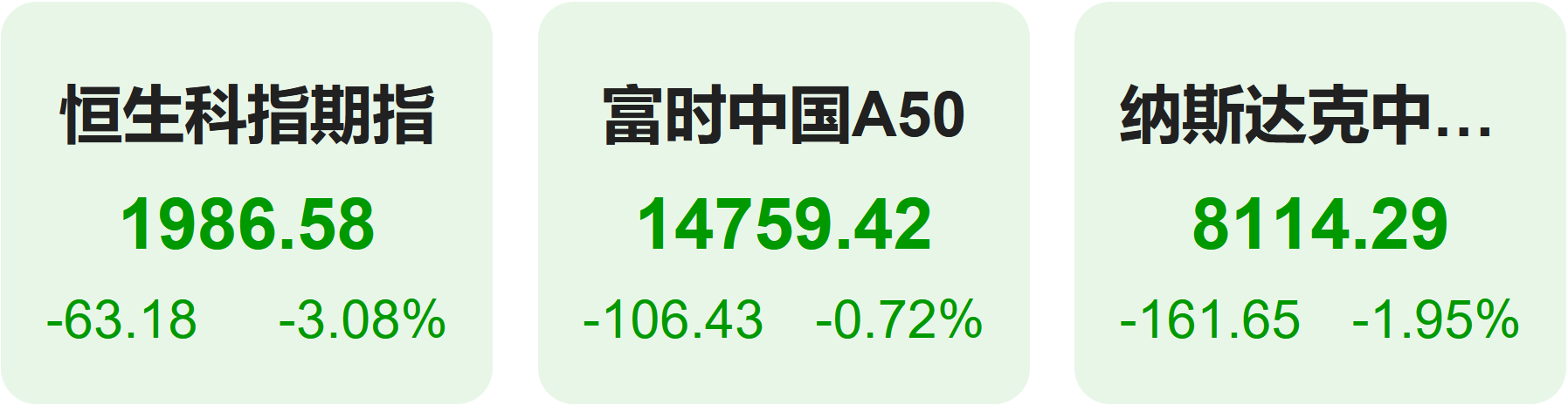10月14日,隔夜恒生科技指数期货下跌3.08%,纳斯达克中国金龙指数下跌1.95%,富时中国A50指数下跌0.72%。