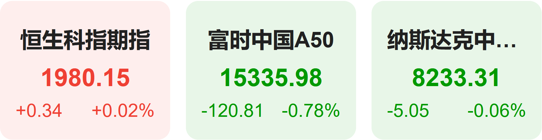 11月11日,隔夜恒生科技指数期货上涨0.02%,纳斯达克中国金龙指数下跌0.06%,富时中国A50指数下跌0.78%。