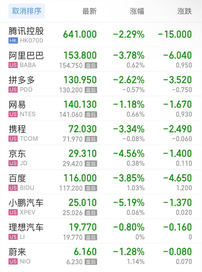 上周五,热门中概股方面,腾讯控股(港股)跌2.29%,阿里巴巴跌3.78%,拼多多跌2.62%,网易跌1.18%,携程跌3.34%,百度跌3.85%,小鹏汽车跌5.19%,理想汽车跌0.80%,蔚来跌1.28%。