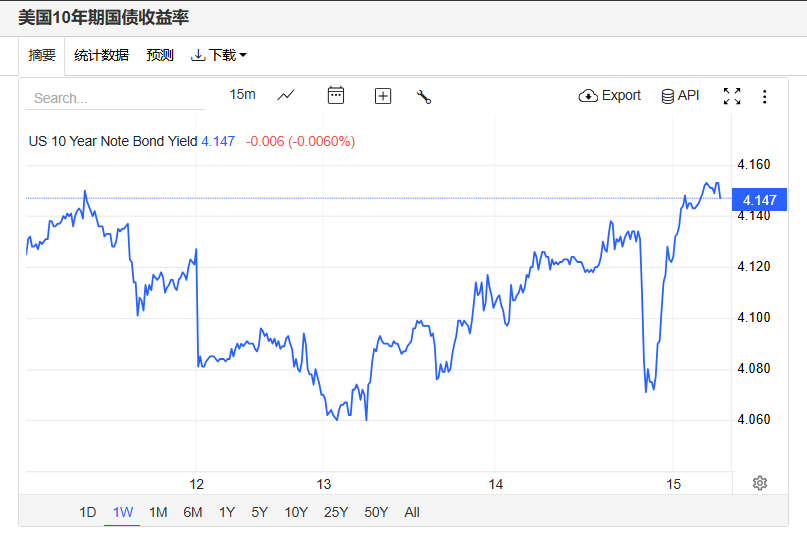 上周五,美债收益率普遍收涨,基准的10年期美债收益最终收报4.147%,对美联储政策利率敏感的2年期美债收益率收报3.612%。