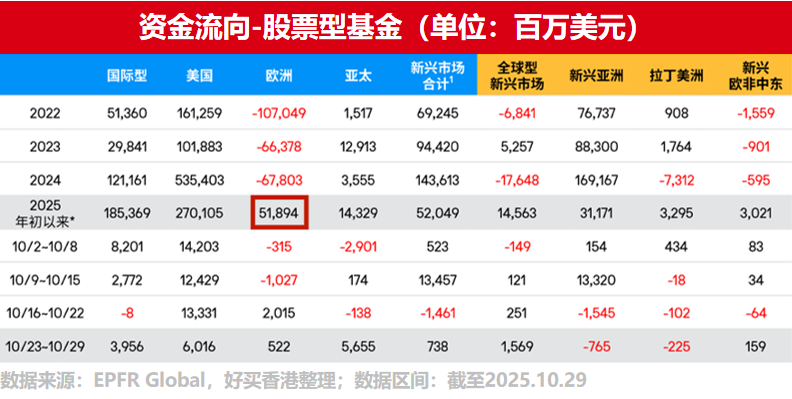 这一估值优势在科技股估值高企、AI领域出现泡沫化担忧、美国债务压力持续积累的背景下尤为凸显,促使国际资金将欧洲视为当前最具性价比的配置方向。2025年,欧洲股票基金创下近二十五年来的资金净流入史上第二高的纪录,充分证明全球资本对其估值修复与增长潜力的高度认可。