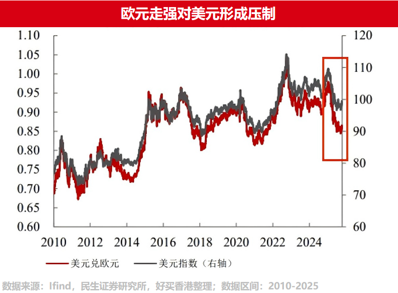 2025年美元温和走弱与欧元稳步升值,为欧洲资产带来了显著的“汇率放大效应”。以美元计价的投资者在享受股市上涨收益的同时,更获得了可观的汇兑收益,形成“汇率+资产”双重回报,吸引了全球资本的大规模涌入,为市场提供了充沛的流动性支持。