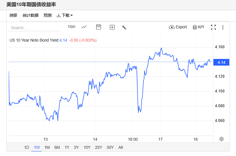 美债收益率持稳,基准的10年期美债收益最终收报4.14%,对美联储政策利率敏感的2年期美债收益率收报3.619%。