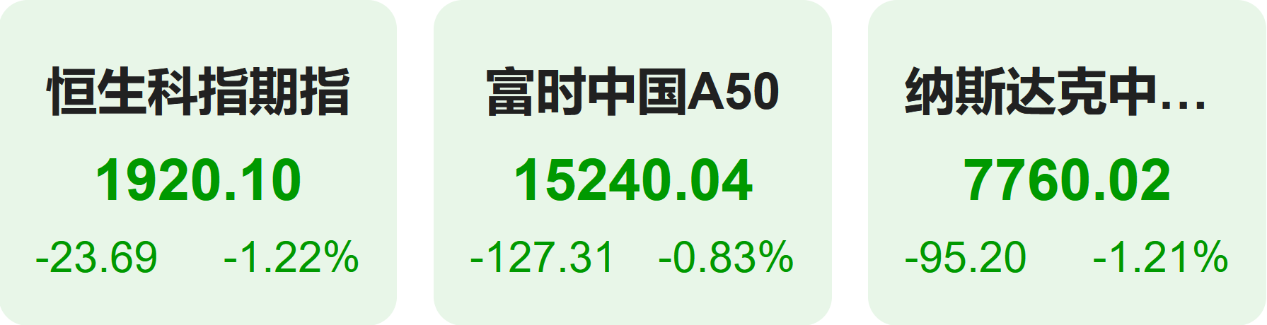 11月17日,隔夜恒生科技指数期货下跌1.22%,纳斯达克中国金龙指数下跌1.21%,富时中国A50指数下跌0.83%。