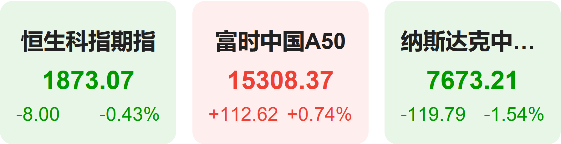 11月19日,隔夜恒生科技指数期货下跌0.43%,纳斯达克中国金龙指数下跌1.54%,富时中国A50指数上涨0.74%。