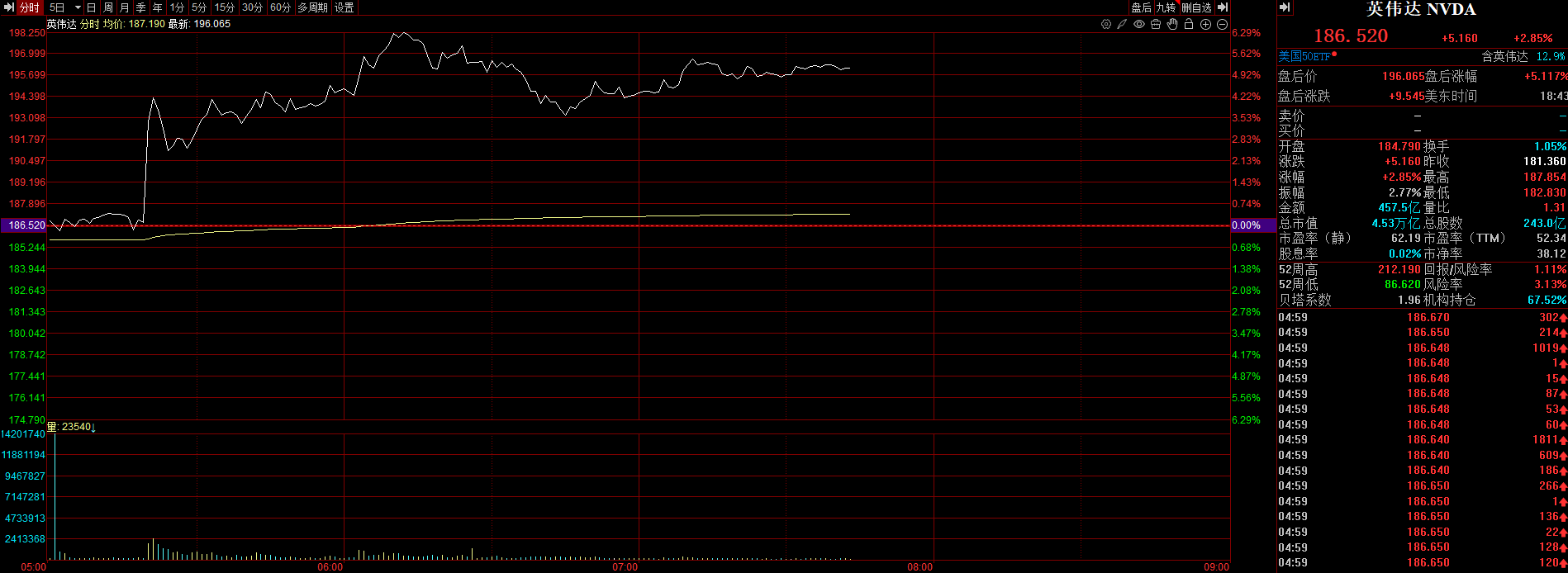 财报公布后,收涨近3%的英伟达盘后涨幅迅速扩大,盘后涨幅曾超过6%。分析师认为,英伟达提供的总营收和毛利率指引缓和了外界的AI泡沫担忧。