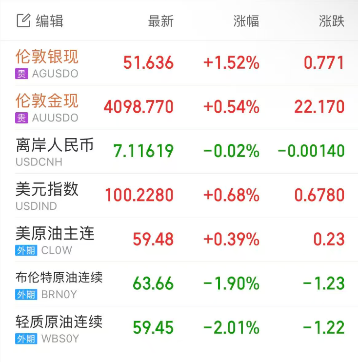 现货黄金盘中一度冲高至4130美元/盎司上方,但在强势美元的限制下日内涨幅大幅收窄,伦敦金最终收涨0.49%,报4096美元/盎司;伦敦银最终收涨1.4%,报51.572美元/盎司。