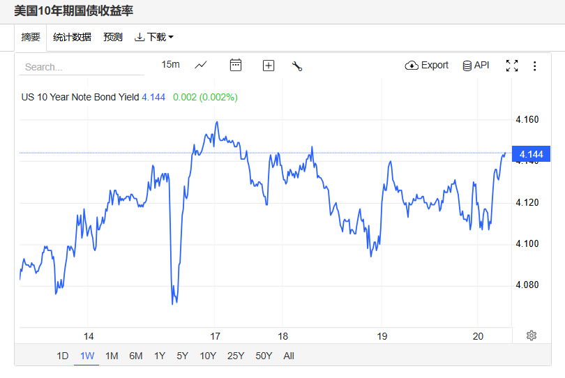 美债收益率普涨,基准的10年期美债收益最终收报4.144%,对美联储政策利率敏感的2年期美债收益率收报3.602%。