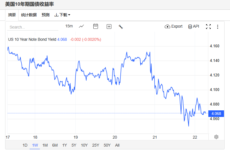 上周五,美债收益率全线走低,基准的10年期美债收益最终收报4.068%,对美联储政策利率敏感的2年期美债收益率收报3.518%。