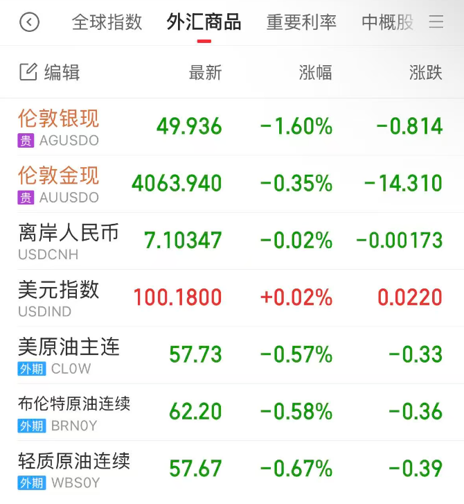 现货黄金盘中跌超1%后一度转涨,但尾盘再度走弱,伦敦金最终收跌0.35%,报4063.94美元/盎司,且录得本月来首次周度下跌;伦敦银最终收跌1.6%,报49.936美元/盎司。