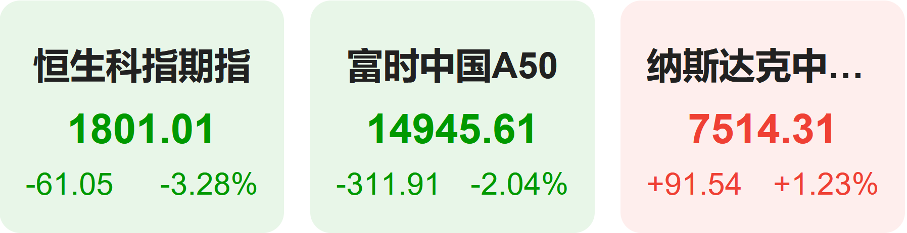 11月21日,隔夜恒生科技指数期货下跌3.28%,纳斯达克中国金龙指数上涨1.23%,富时中国A50指数下跌2.04%。