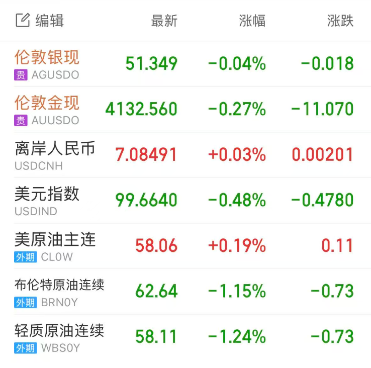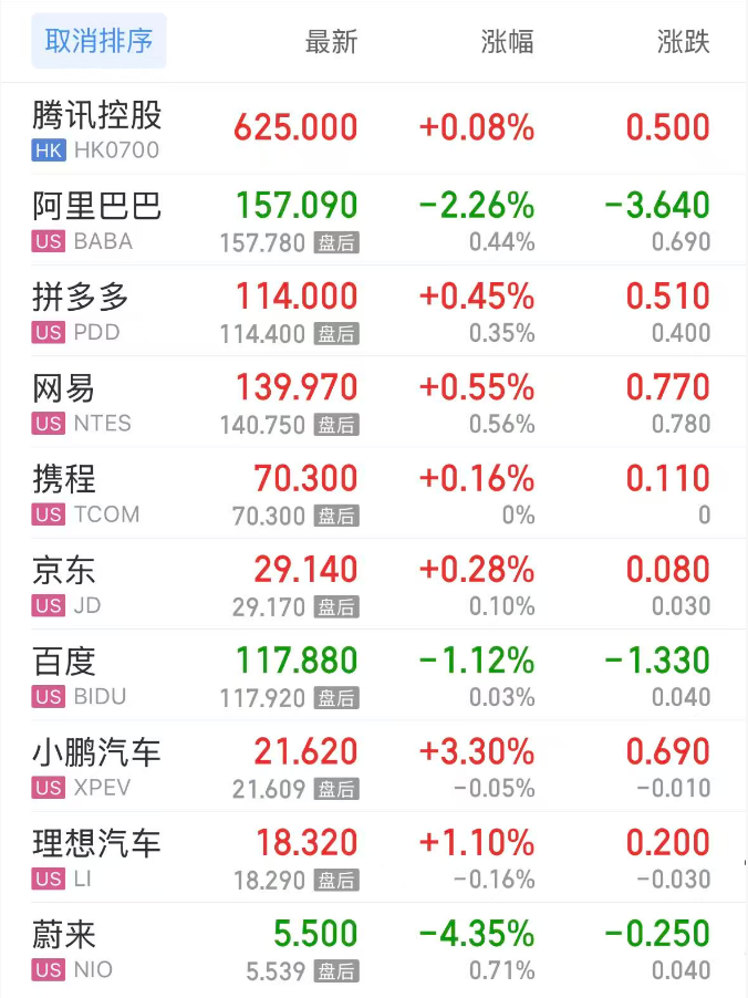 热门中概股方面,腾讯控股(港股)涨0.08%,阿里巴巴跌2.27%,拼多多涨0.45%,网易涨0.55%,携程涨0.16%,百度跌1.12%,小鹏汽车涨3.30%,理想汽车涨1.10%,蔚来跌4.35%。