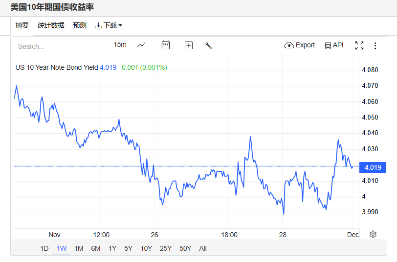 上周五,美债收益率有所回升,基准的10年期美债收益率最终收报4.019%,对美联储政策利率敏感的2年期美债收益率收报3.5020%。