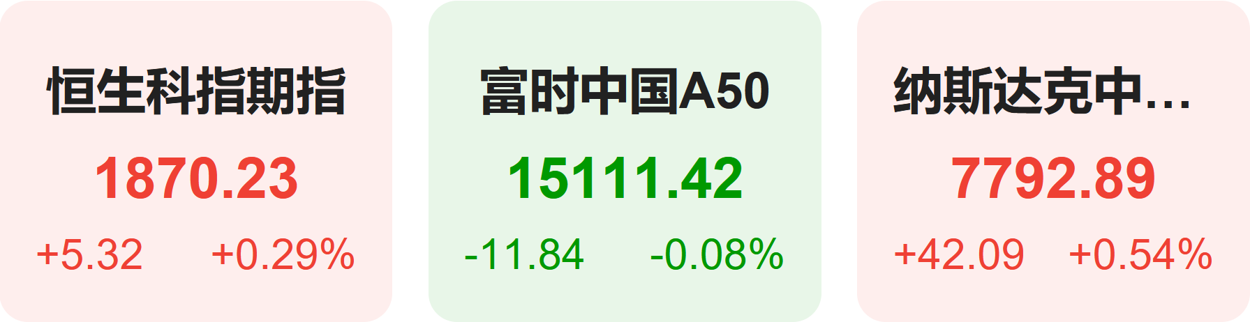 11月28日,隔夜恒生科技指数期货上涨0.29%,纳斯达克中国金龙指数上涨0.54%,富时中国A50指数下跌0.08%。