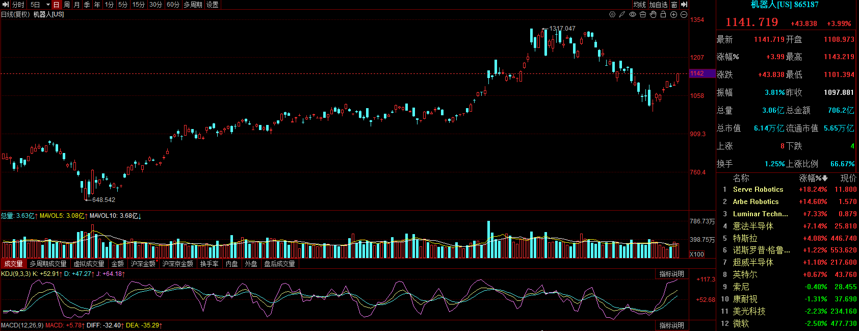 消息一出,美股机器人概念股闻风而动,iRobot飙涨近74%,特斯拉涨近4.1%,Richtech Robotics涨18.5%,Serve Robotics涨18.2%。