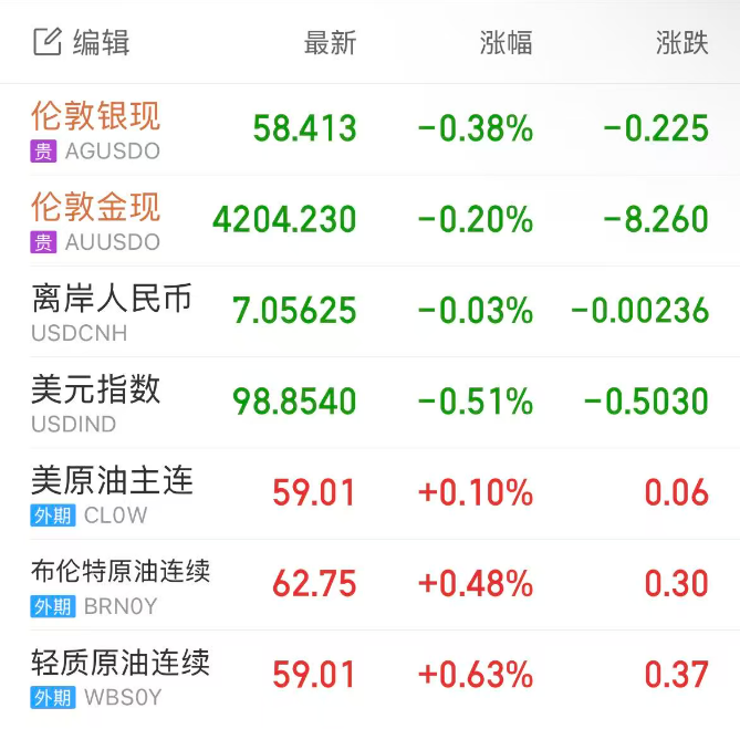 ADP数据意外下跌,增强了美国下周降息的预期,但现货黄金在触及4240美元后回落,伦敦金最终收跌0.14%,报4206.85美元/盎司;现货白银创下历史新高后回落,伦敦金最终收跌0.29%,报58.47美元/盎司。