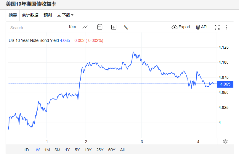 美债收益率小幅波动,基准的10年期美债收益率最终收报4.0670%,对美联储政策利率敏感的2年期美债收益率收报3.4980%。