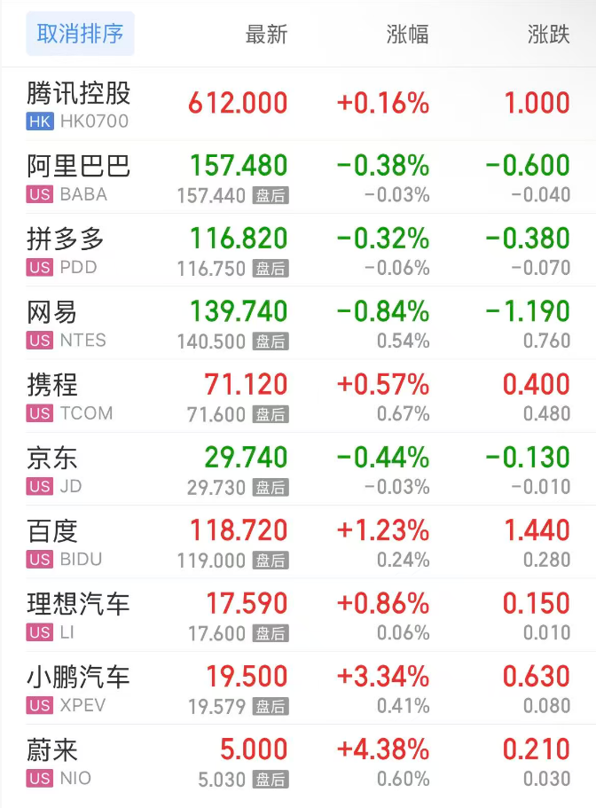 热门中概股方面,腾讯控股(港股)涨0.16%,阿里巴巴跌0.38%,拼多多跌0.32%,网易跌0.84%,携程涨0.57%,百度涨1.23%,理想汽车涨0.86%,小鹏汽车涨3.34%,蔚来涨4.38%。