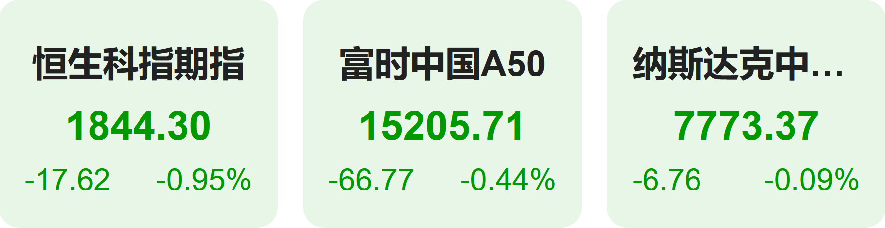 12月11日,隔夜恒生科技指数期货下跌0.95%,纳斯达克中国金龙指数下跌0.09%,富时中国A50指数下跌0.44%。