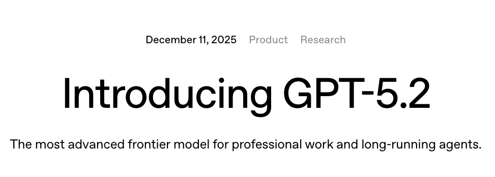 OpenAI发布GPT-5.2迎战Gemini 号称智能体编码最强