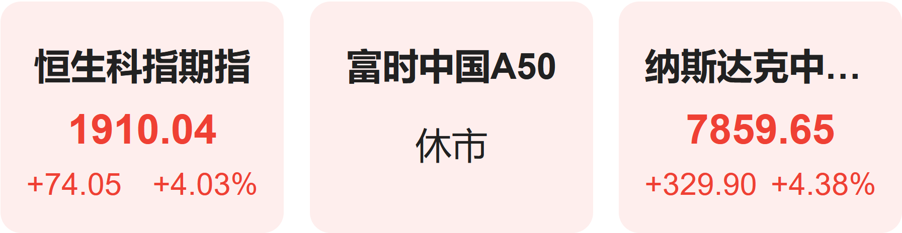 上周五,恒生科技指数期货上涨4.03%,纳斯达克中国金龙指数上涨4.38%。