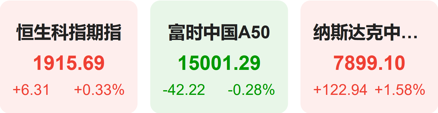 1月22日,隔夜恒生科技指数期货上涨0.33%,纳斯达克中国金龙指数上涨1.58%,富时中国A50指数下跌0.28%。