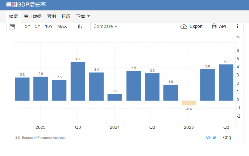 美国Q3实际GDP季环比终值小幅上修至4.4% 创两年来最快增速