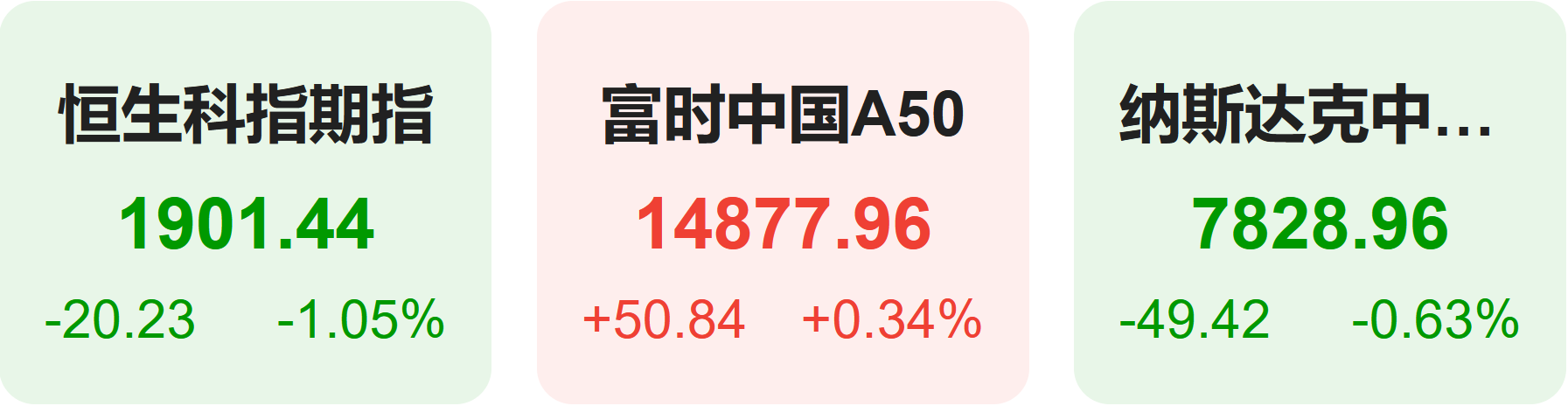1月26日,隔夜恒生科技指数期货下跌1.05%,纳斯达克中国金龙指数下跌0.63%,富时中国A50指数上涨0.34%。