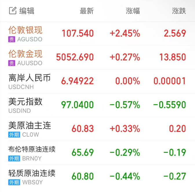 隔夜美股波动性整体相对较低,但贵金属市场则是另一番景象。地缘政治风险持续发酵叠加美国政府关门风险等因素,,金银一度再创历史新高,黄金史上突破5000美元关口,盘中涨超2%,白银盘中一度涨超10%、创2008年金融危机以来最大盘中涨幅,随后曾抹平涨幅。